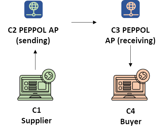 With the Peppol four-corner model, buyers and suppliers only need one service provider to trade. This model applies to both local and international transactions.